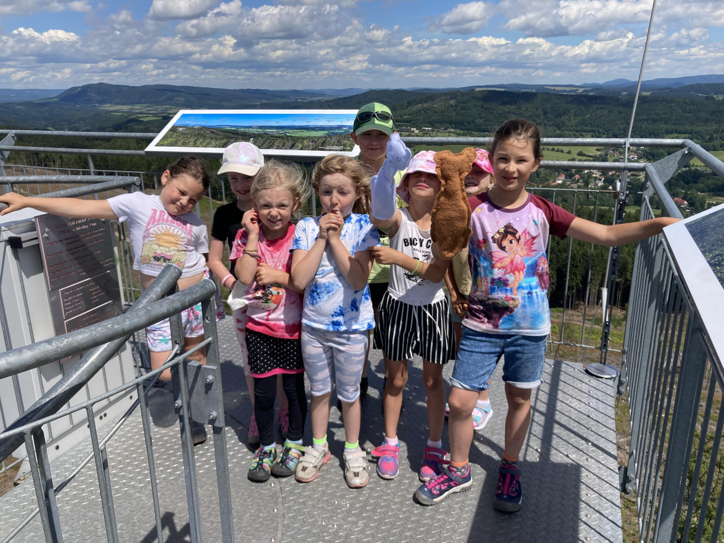 V červnu jsme s Pejskem a Kočičkou vyrazili do Malých Svatoňovic. Navštívili jsme Muzeum bratří Čapků, kde jsme se dozvěděli nové informace o panu spisovateli Josefu Čapkovi. Potom jsme vyšlápli na kopec Žaltman a vylezli na rozhlednu, odkud byl parádní výhled.