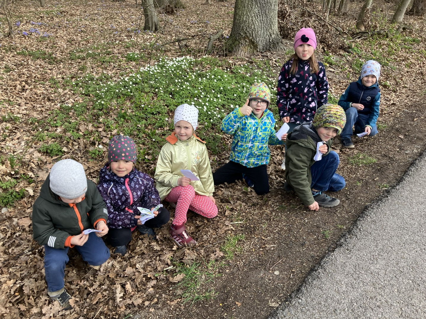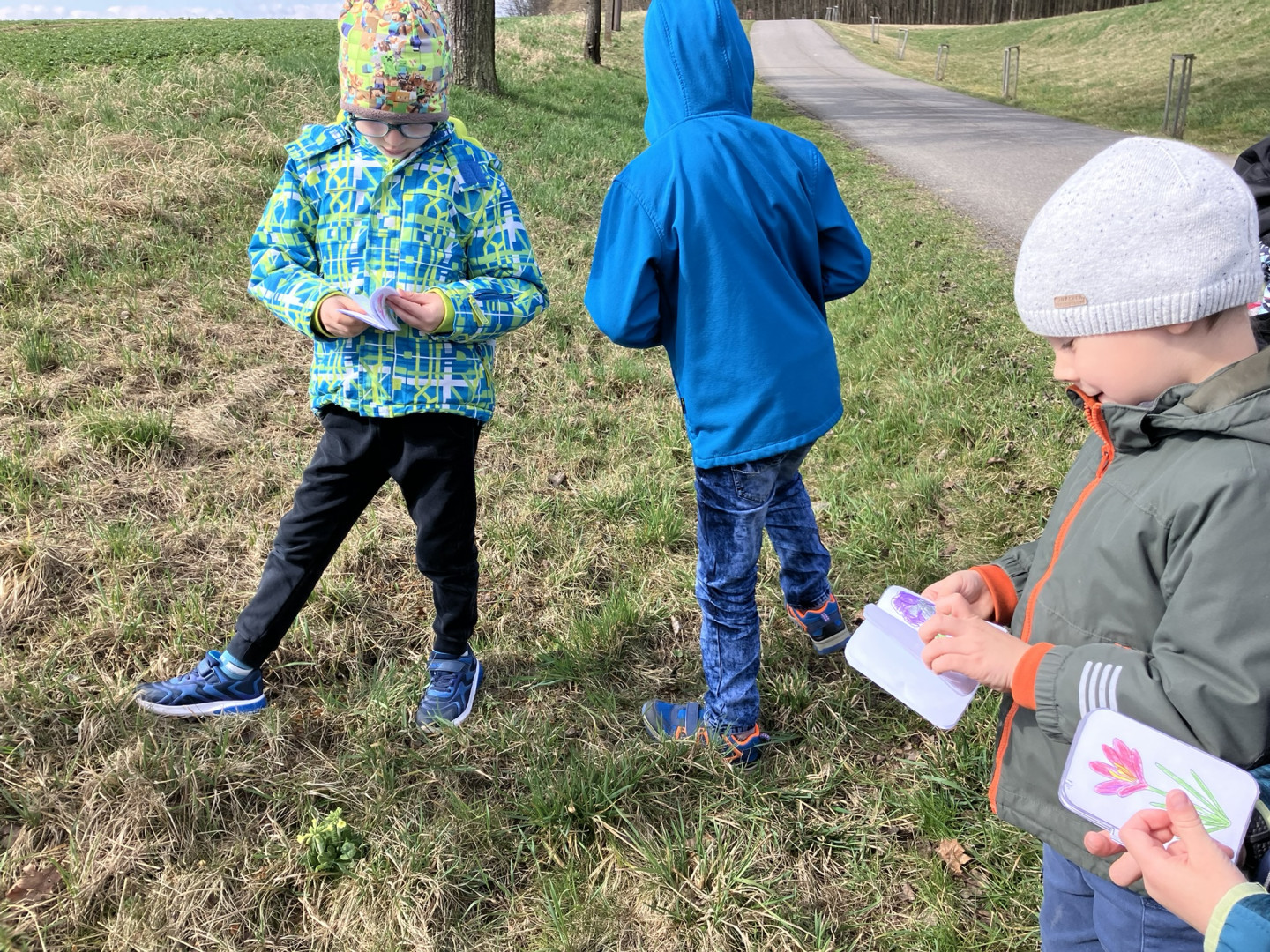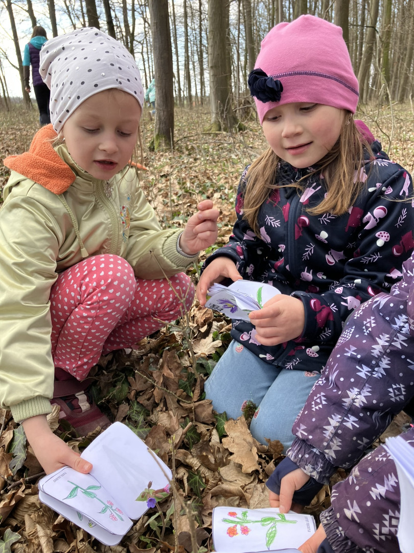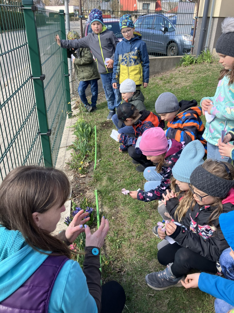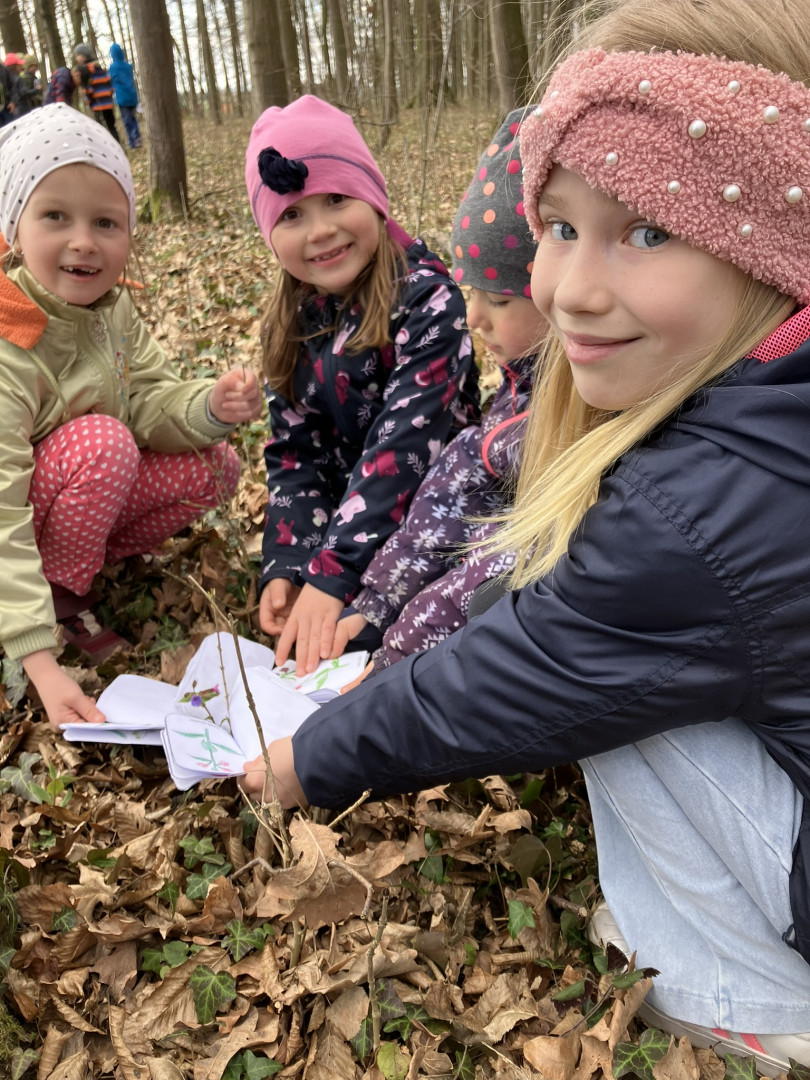 25. března si děti z 1. ročníku vyrobily knížku s obrázky a názvy jarních květin, se kterou pak vyrazili do terénu hledat vyobrazené květiny naživo v přírodě.