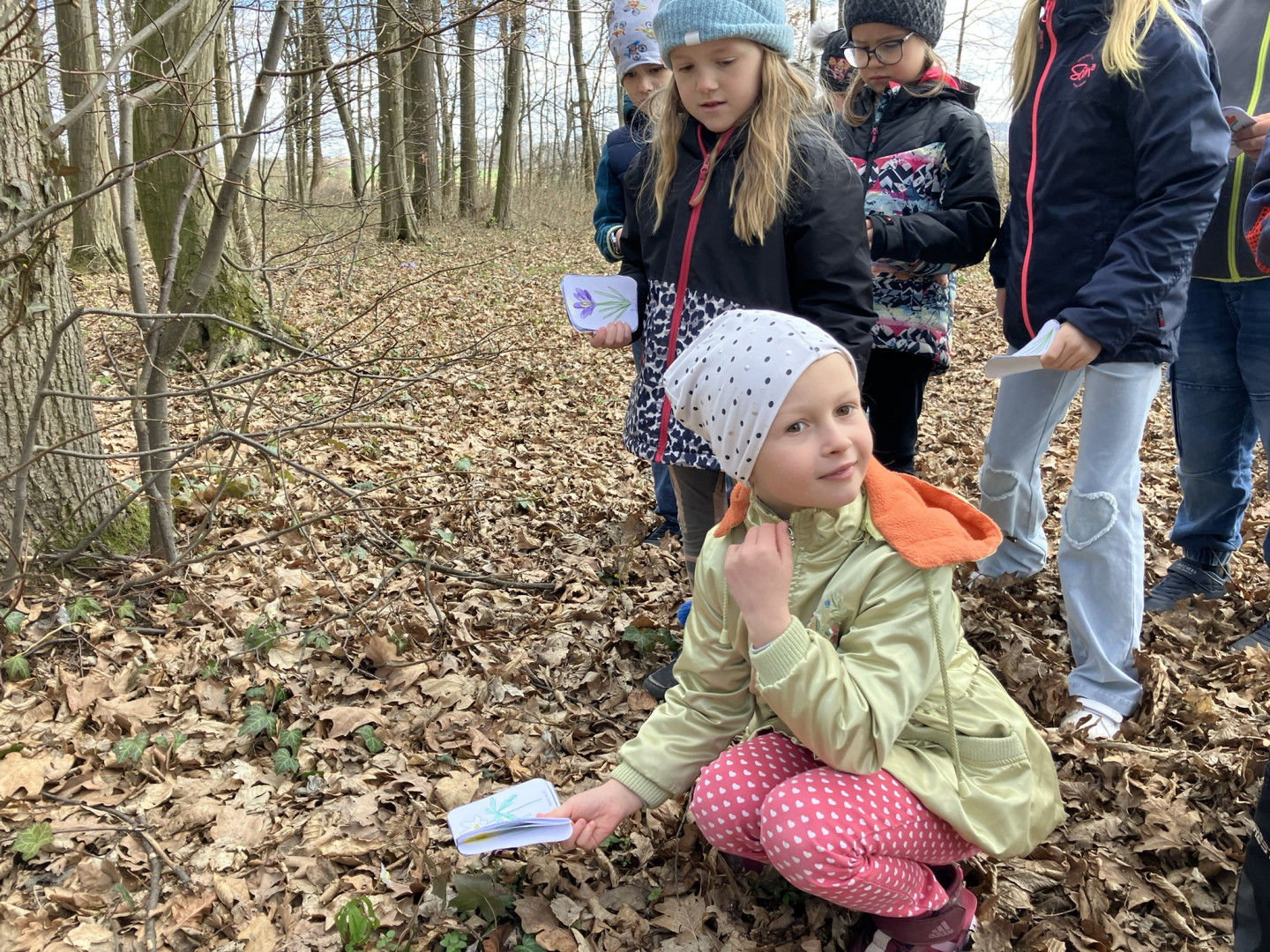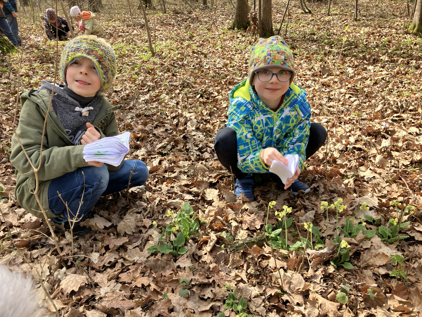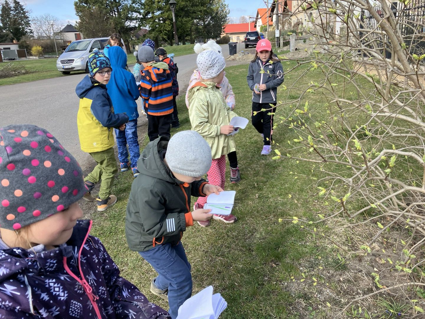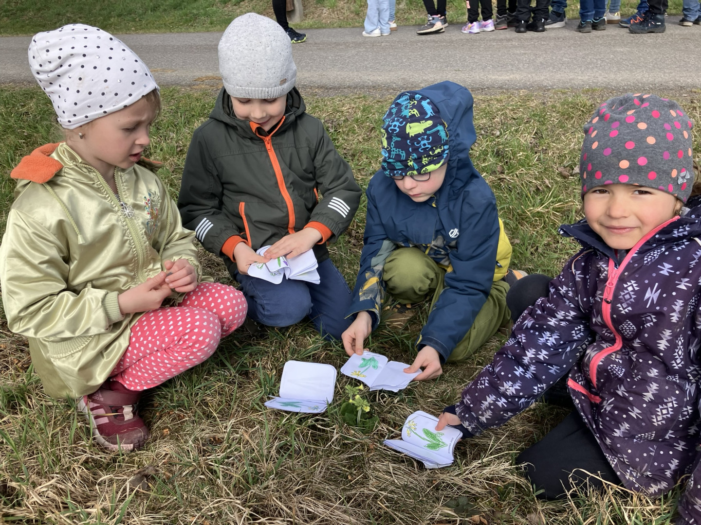 25. března si děti z 1. ročníku vyrobily knížku s obrázky a názvy jarních květin, se kterou pak vyrazili do terénu hledat vyobrazené květiny naživo v přírodě.