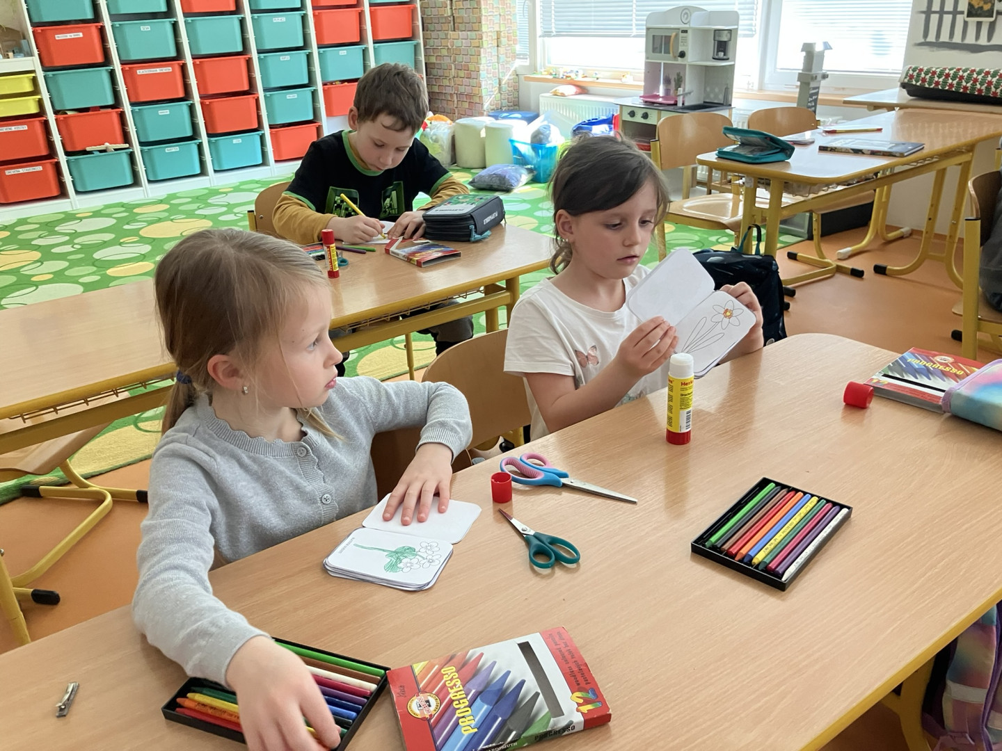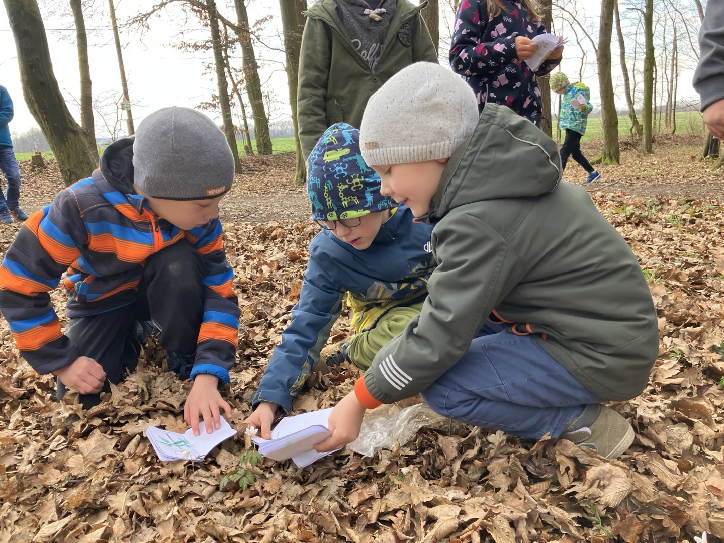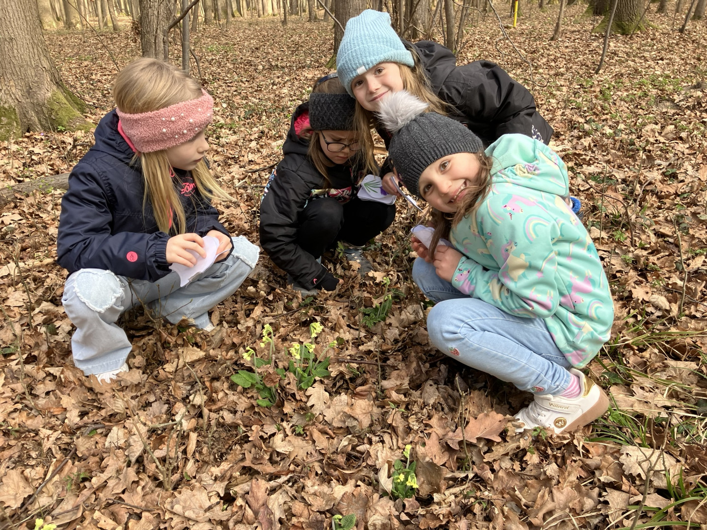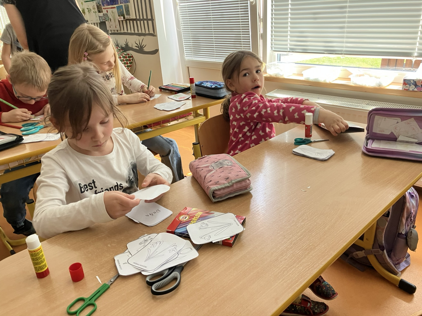 25. března si děti z 1. ročníku vyrobily knížku s obrázky a názvy jarních květin, se kterou pak vyrazili do terénu hledat vyobrazené květiny naživo v přírodě.