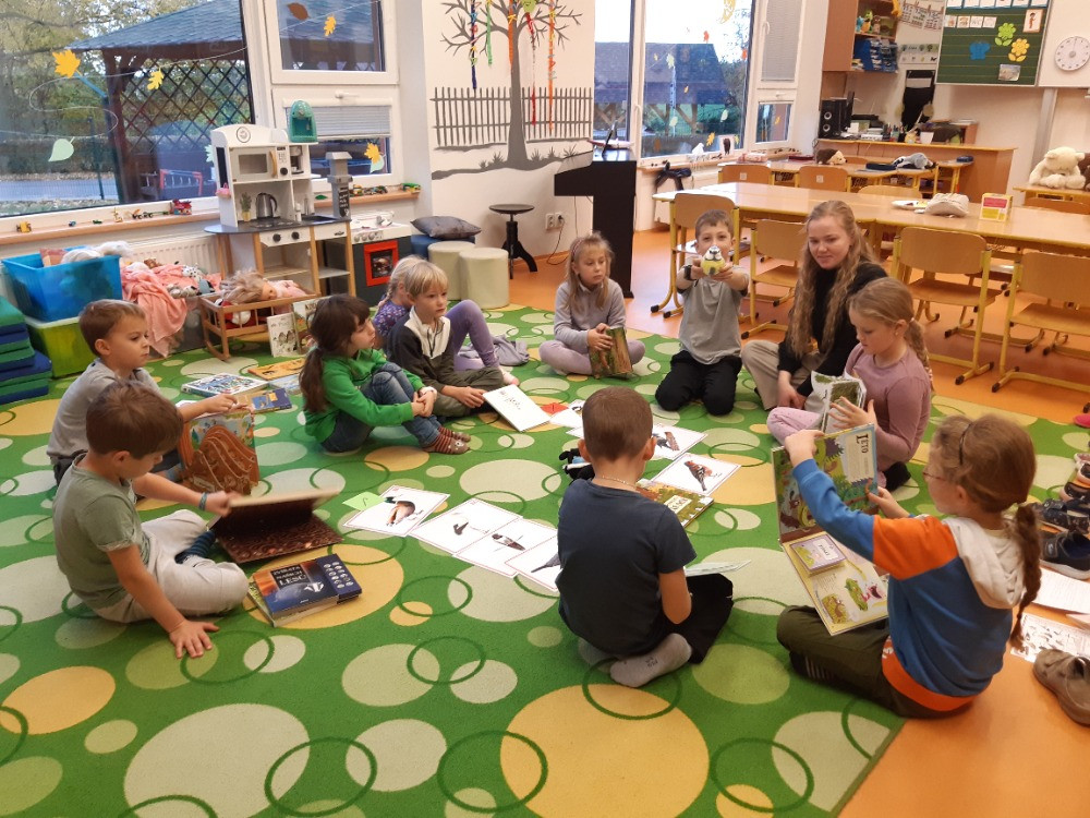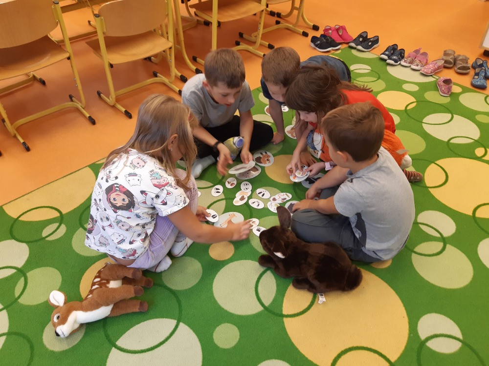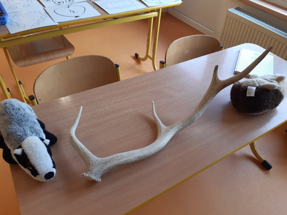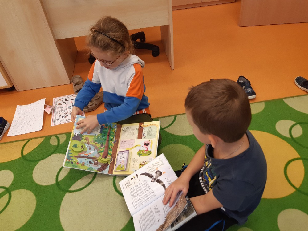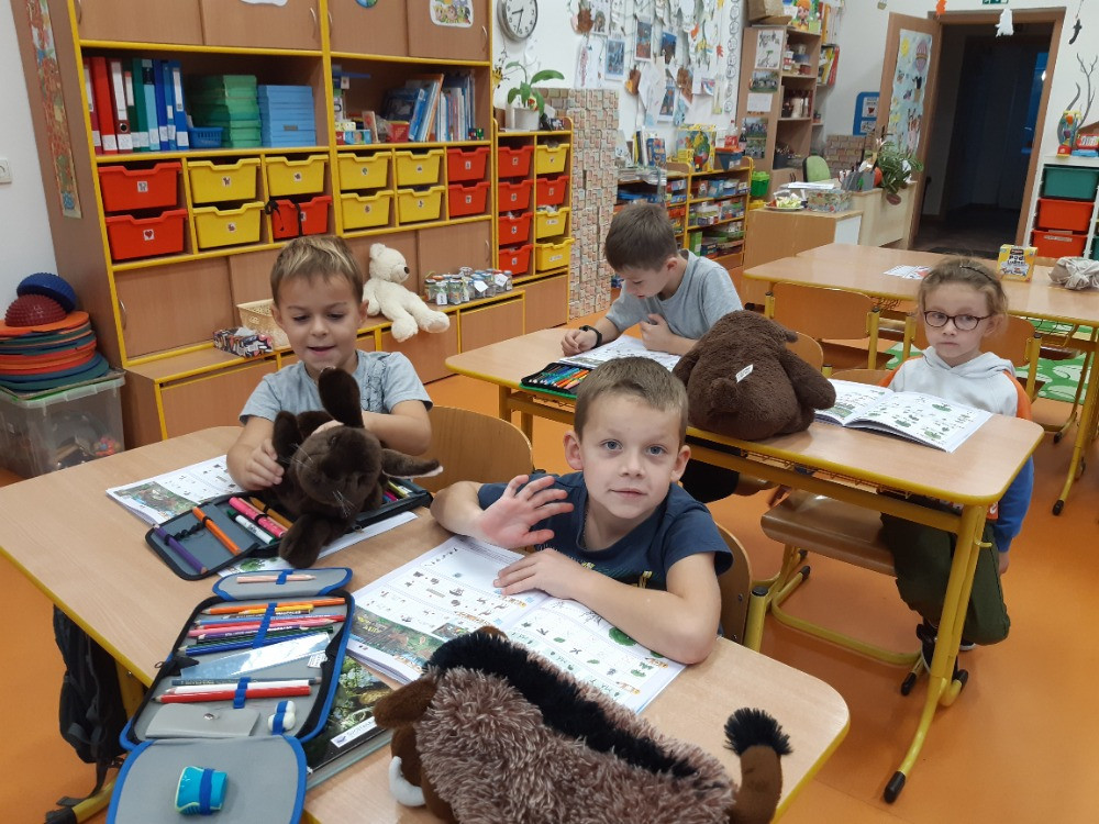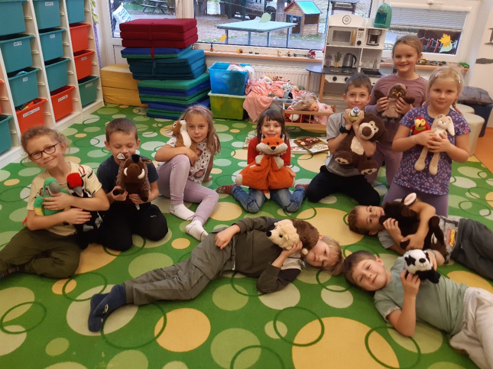 V pátek 24. 10. prvňáčci měli projektový den ZVÍŘATA V LESE NA PODZIM. Učili jsme se společně s plyšáky a prohlíželi si knížky. Zjistili jsme, čím se zvířata živí, kteří ptáci odlétají do teplých krajin, poznávali stopy zvířat. Povídali jsme si, hráli didaktické hry, zhlédli videa apod. Na závěr jsme se vydali na procházku do lesa s kaštany pro zvířátka.