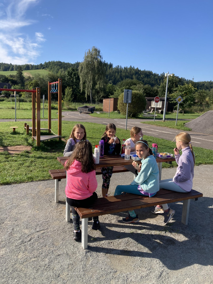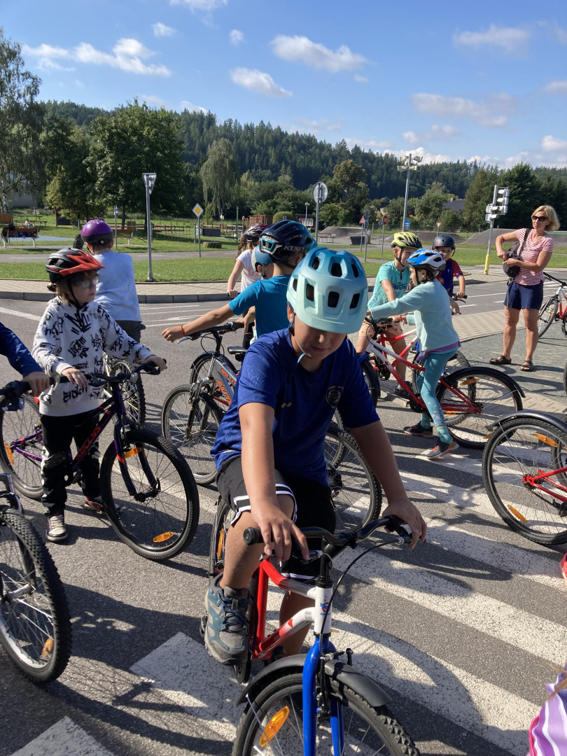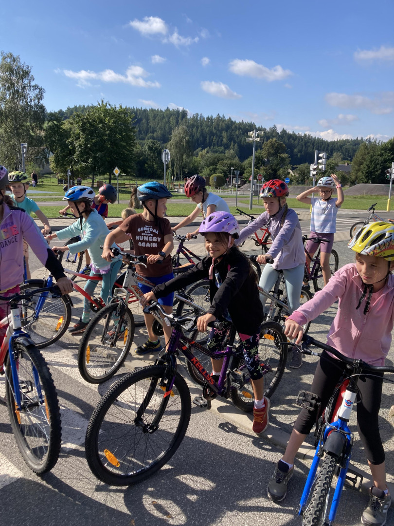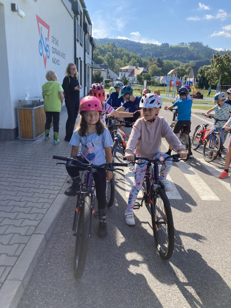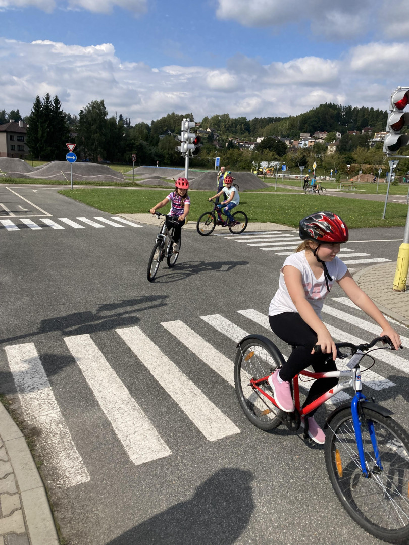 V pátek 5. 9. 2025 jsme s žáky 4. ročníku navštívili dopravní hřiště v Náchodě. Děti se seznamovaly s teoretickou částí. Následně si zkusily jezdit na kole dle dopravních značek.