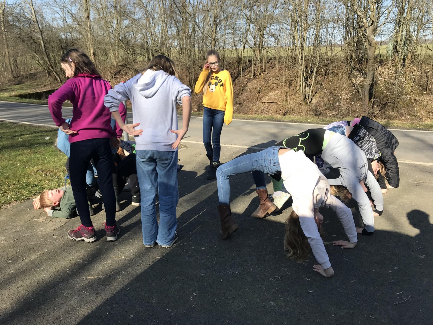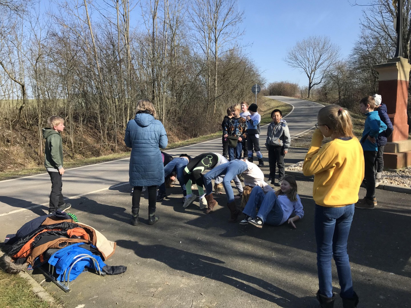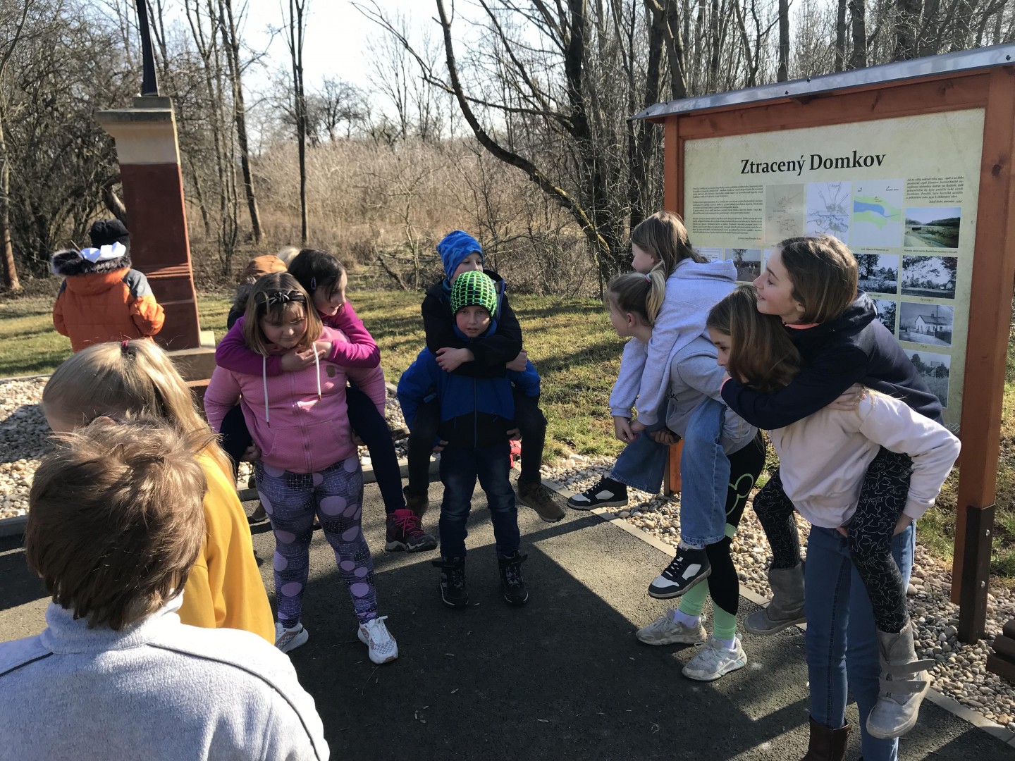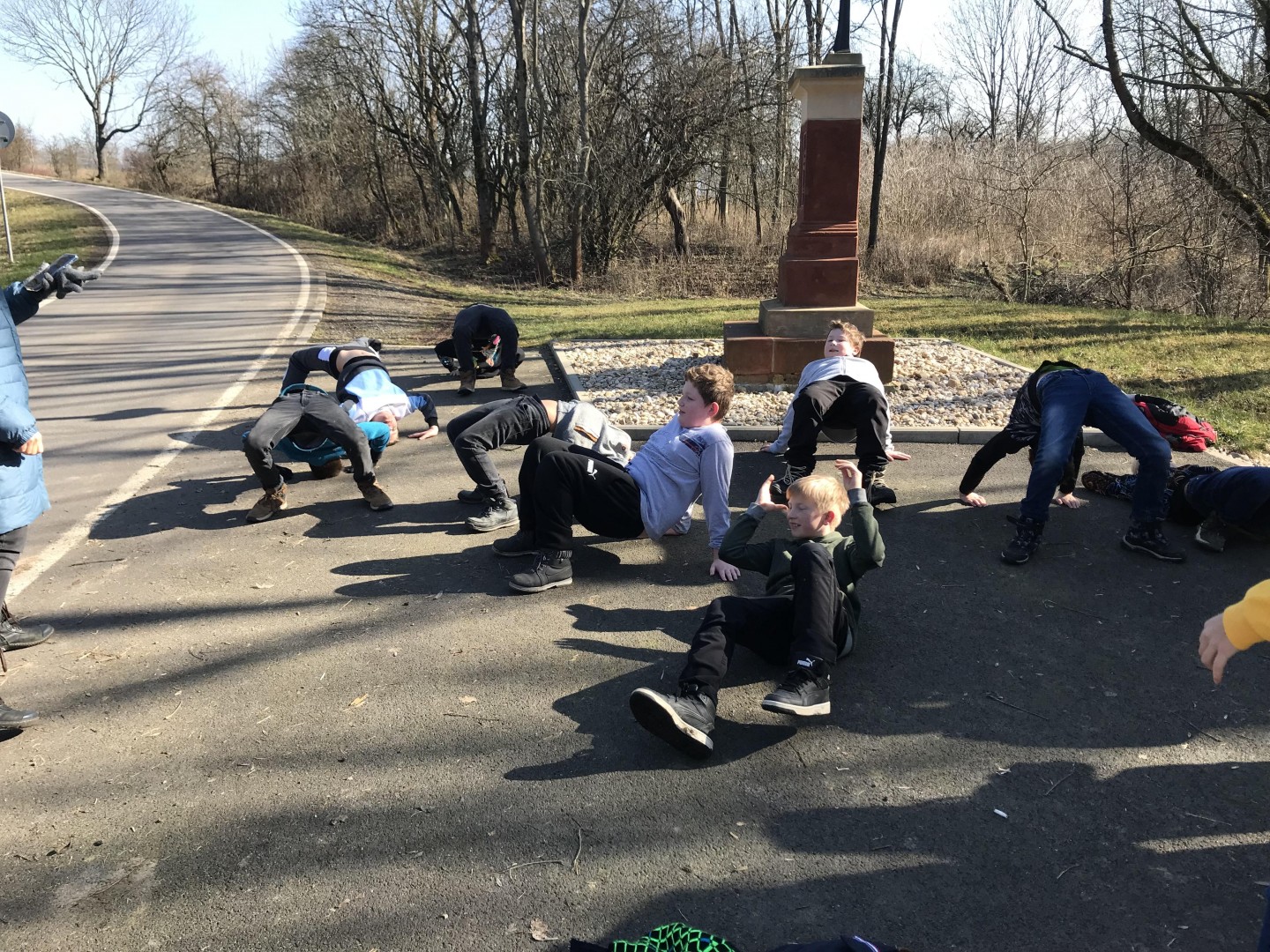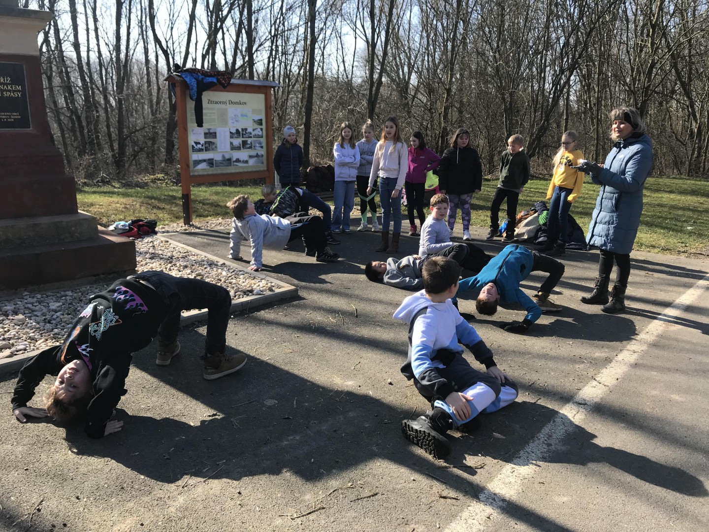 Krásné počasí na začátku března nás vylákalo na netradiční tělocvik do terénu. Třída se rozdělila na dva týmy - holčičí a klučičí. Týmy si navzájem vymyslely úkol, který napsaly na lísteček a cestou ho schovaly. Plnění úkolů pak přineslo různé emoce, ale radost snad převažovala :D