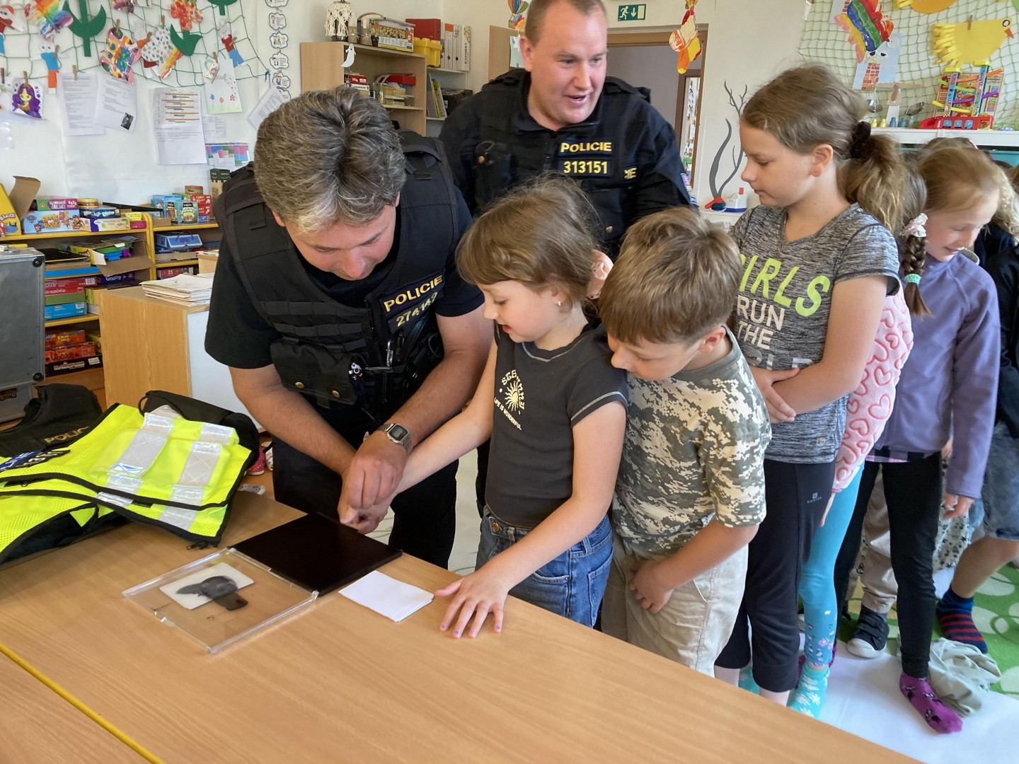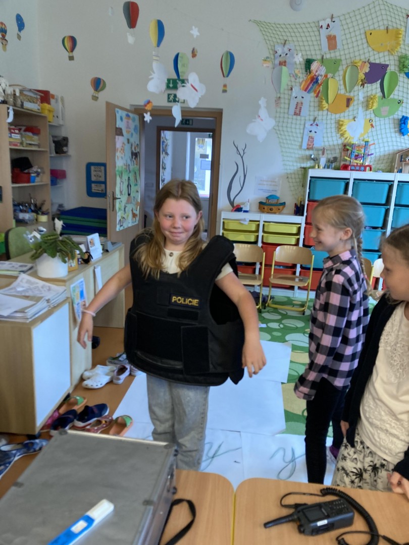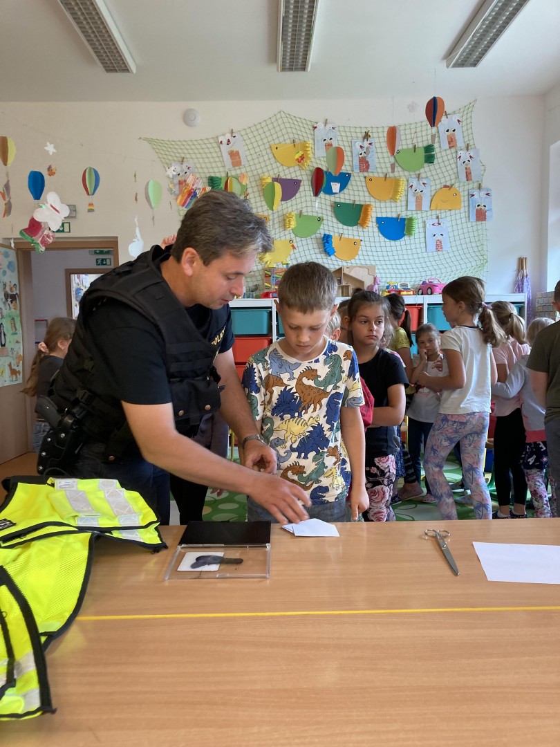 V rámci prevence nás navštívili policisté z Nového Města n/Metují, kteří nám ukázali daktyloskopiské stopy, svoji výzbroj. Děti si zkusily otisk svého prstu a dozvěděly se zajímavé informace.