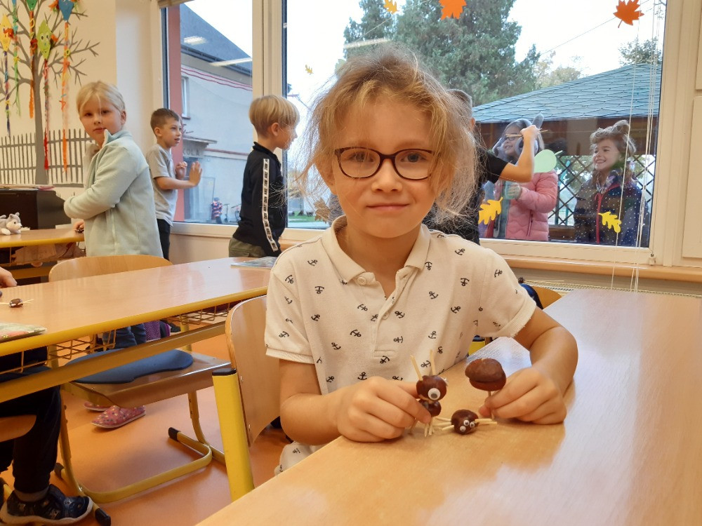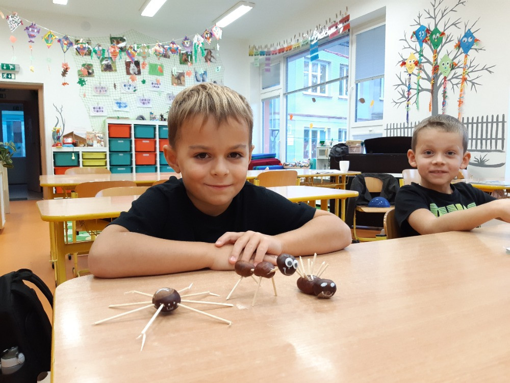 Podívejte, jak se prvňáčkům daří při ČJ a která zvířátka z kaštanů vytvořili při PČ.