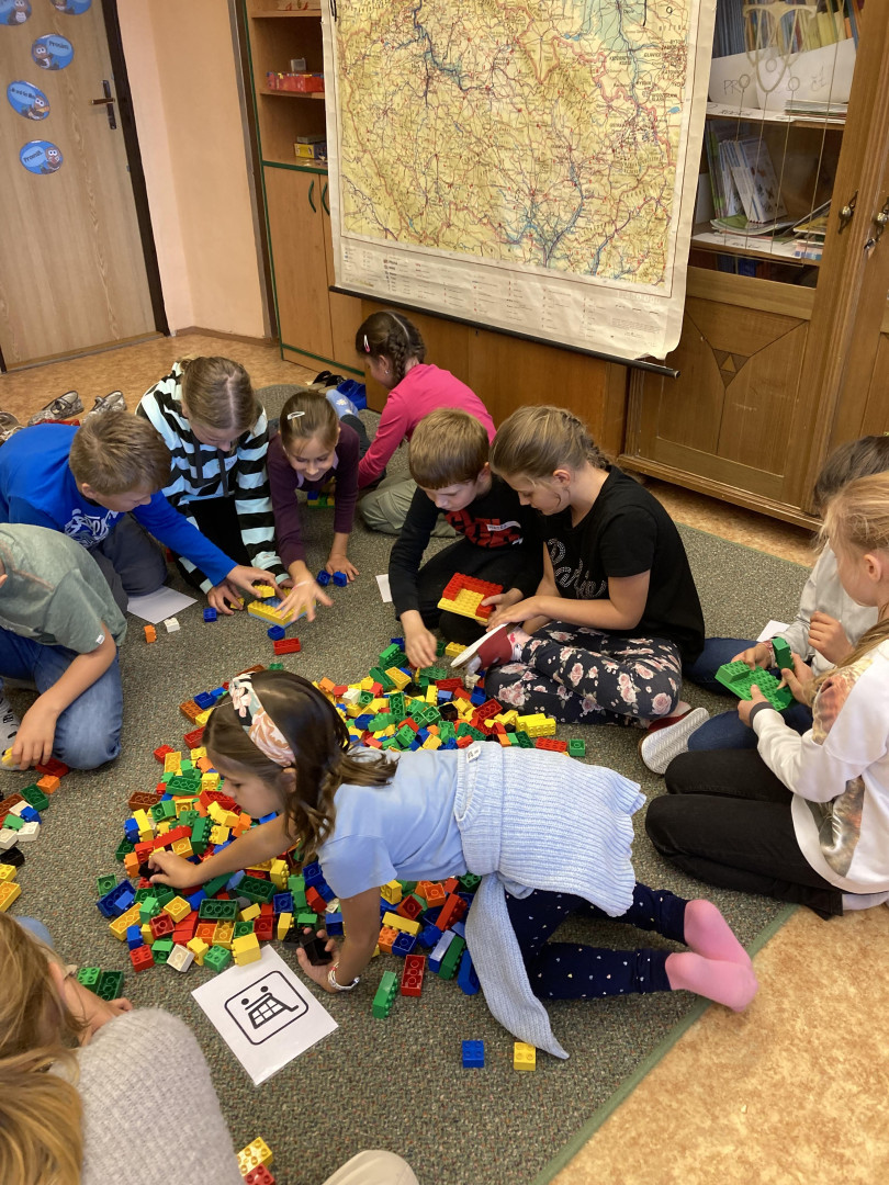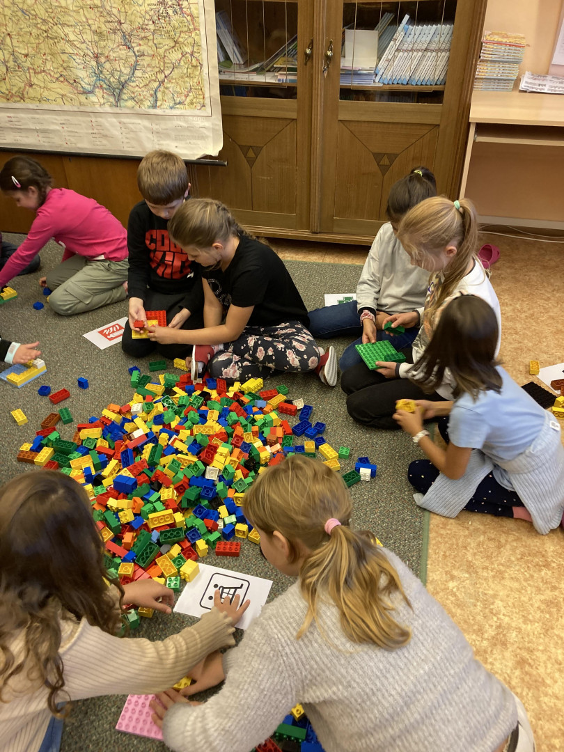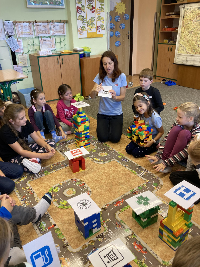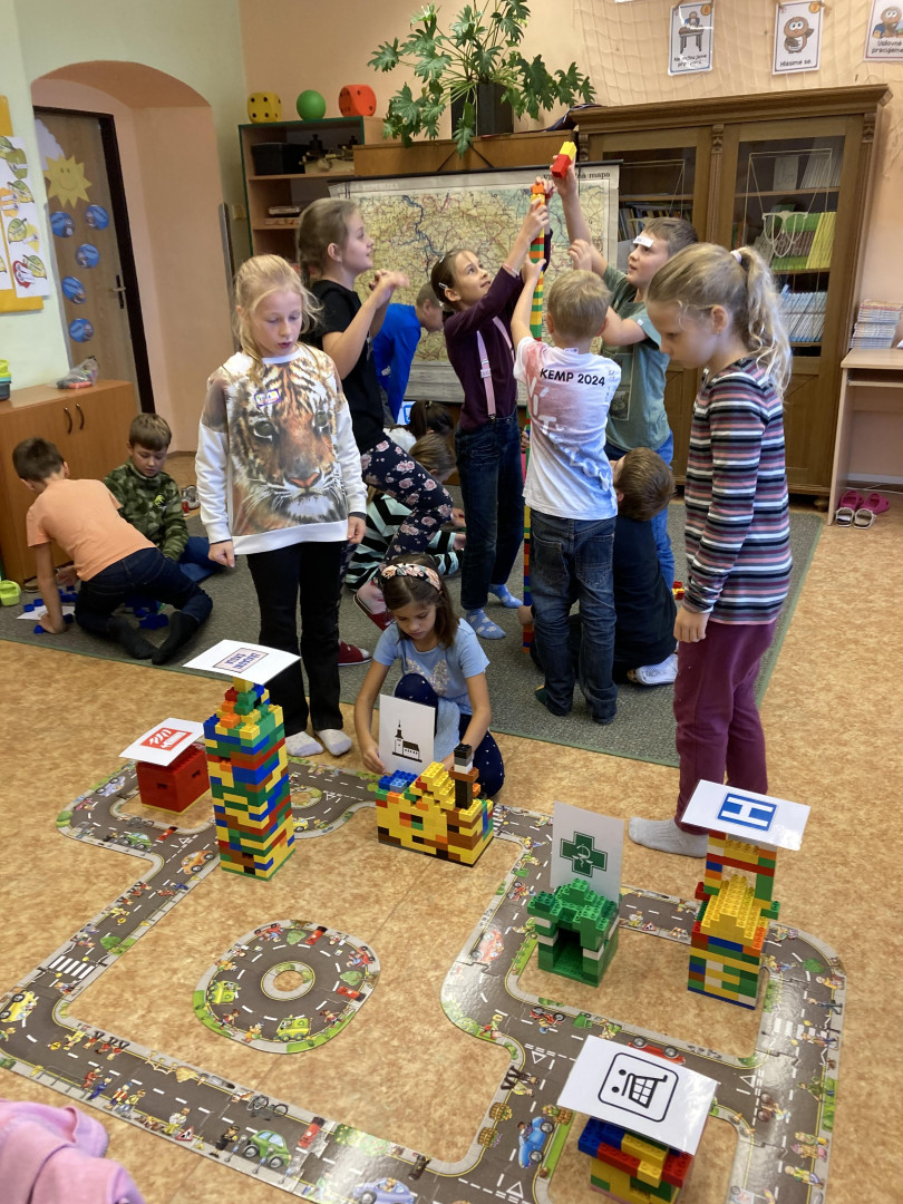 Z žáků 3. třídy se na malou chvíli stali stavitelé města. Děti musely dle plánku postavit silnici. Úkolem dvojic bylo z lega postavit požadovanou stavbu- např. nemocnice, kostel, benzinová stanice, škola, lékárna, policejní stanice, hasiči apod. Tyto stavby pak musely děti umístit do postavené silnice. Skupiny zakreslovaly jednotlivé stavby do plánu. Celý projekt byl velmi zajímavý a děti si ho náležitě užily.
