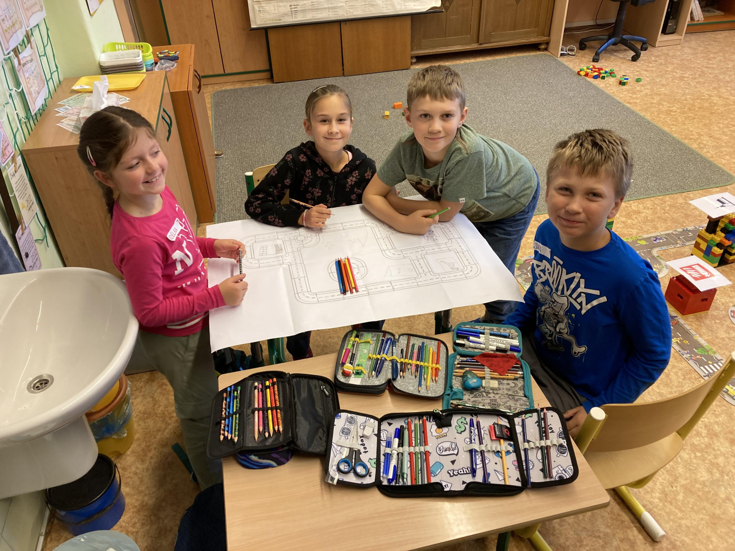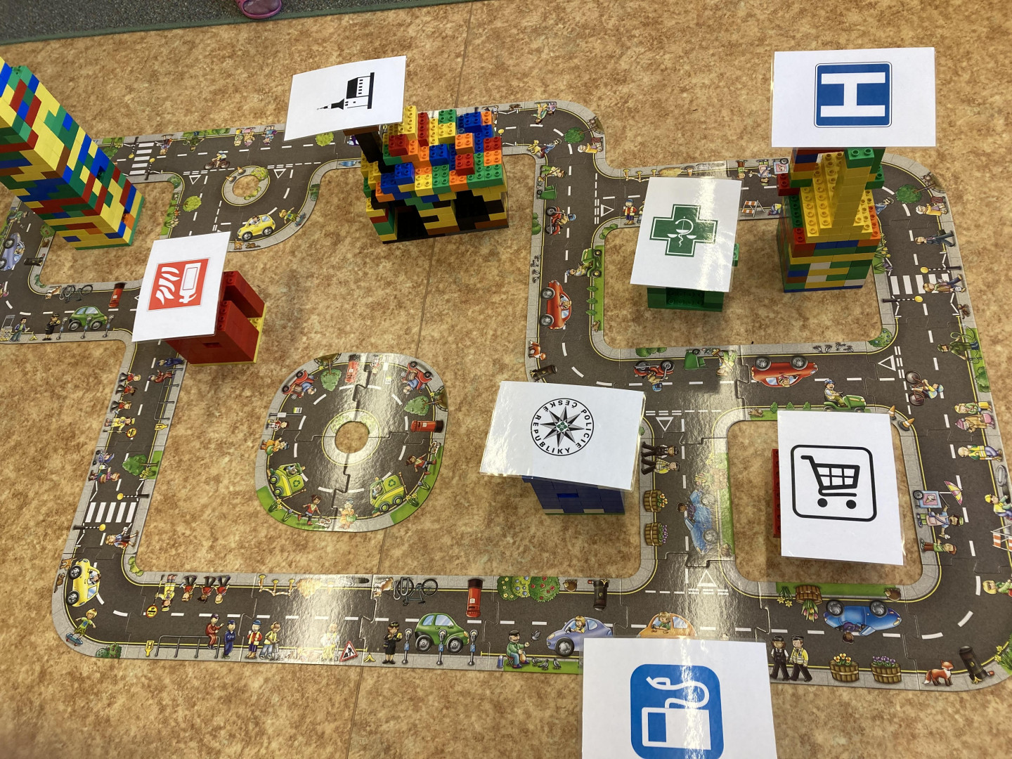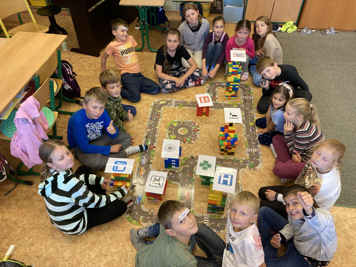 Z žáků 3. třídy se na malou chvíli stali stavitelé města. Děti musely dle plánku postavit silnici. Úkolem dvojic bylo z lega postavit požadovanou stavbu- např. nemocnice, kostel, benzinová stanice, škola, lékárna, policejní stanice, hasiči apod. Tyto stavby pak musely děti umístit do postavené silnice. Skupiny zakreslovaly jednotlivé stavby do plánu. Celý projekt byl velmi zajímavý a děti si ho náležitě užily.
