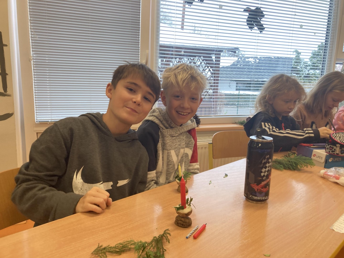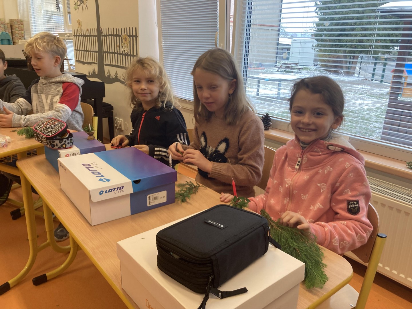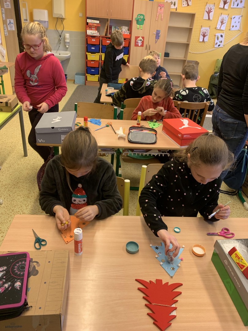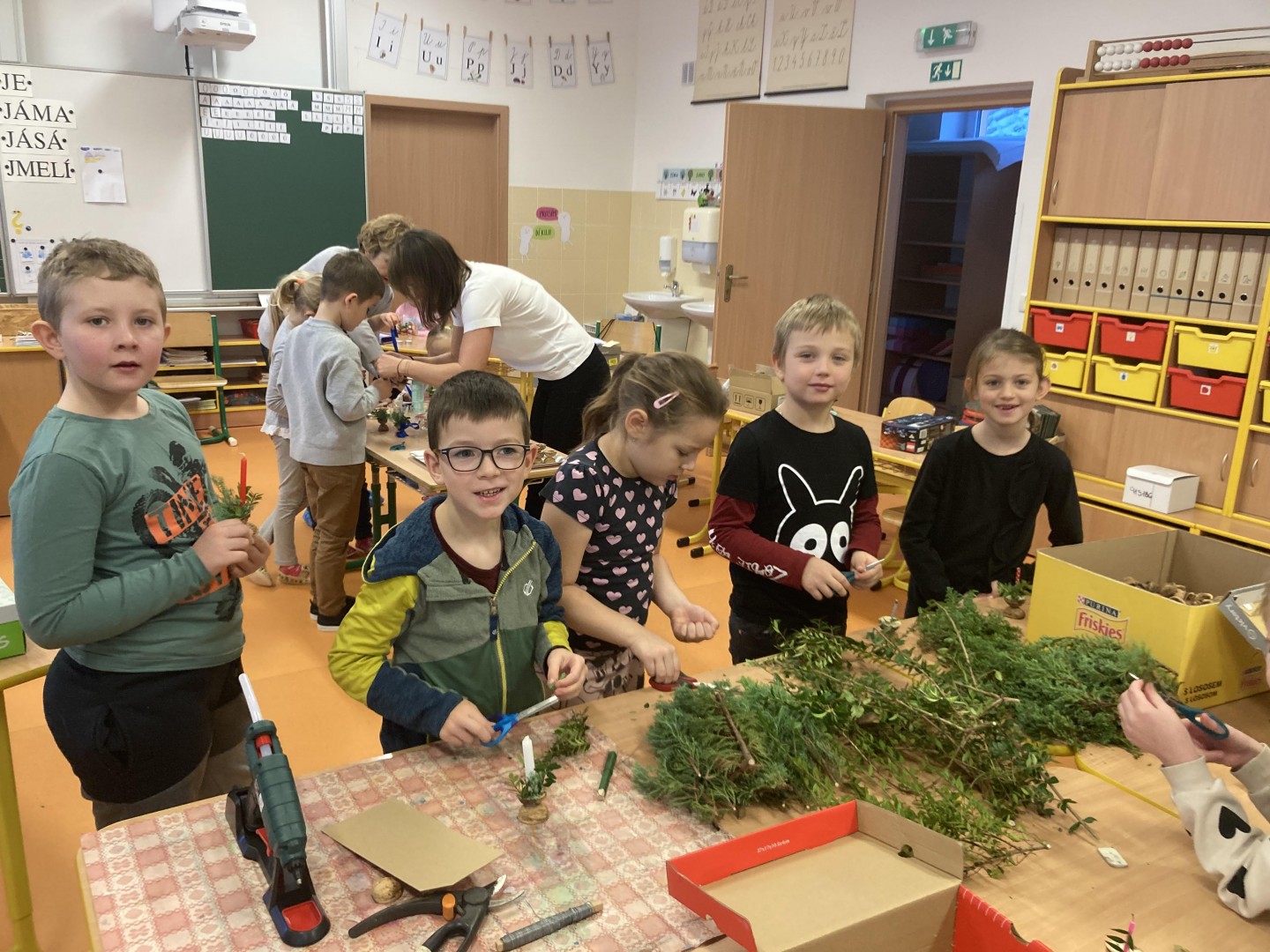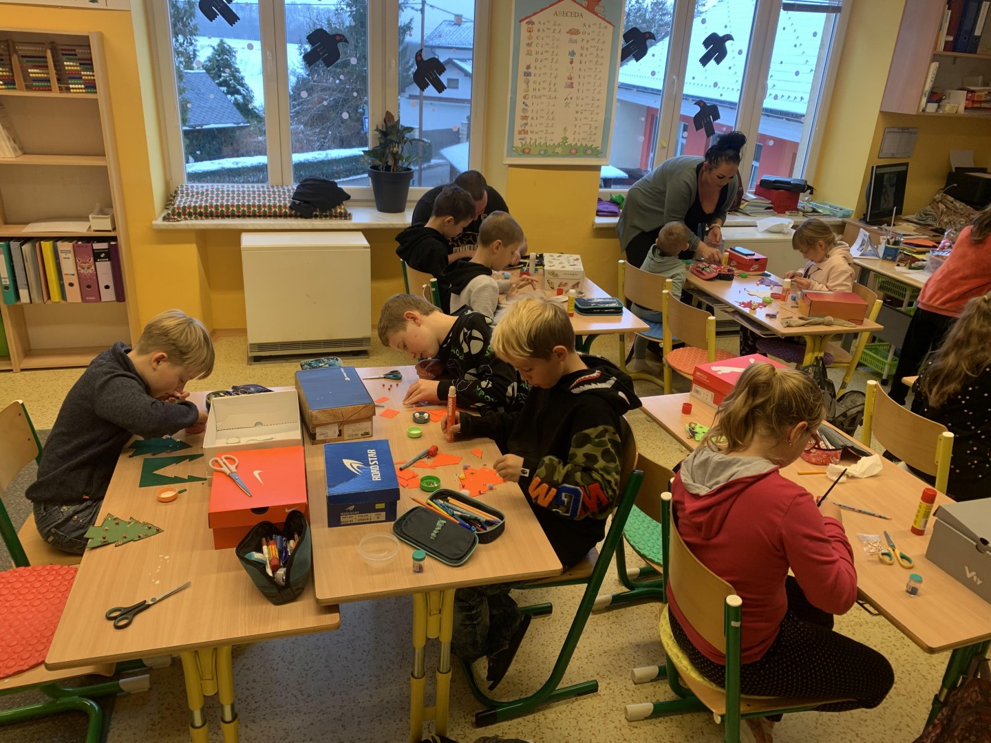 Prvního prosince proběhly na škole tradiční "vánoční dílny", během kterých děti na čtyřech různých stanovištích tvořily výrobky s vánoční tématikou. Zapojili se i někteří rodiče a prarodiče, kterým tímto za účast děkujeme.