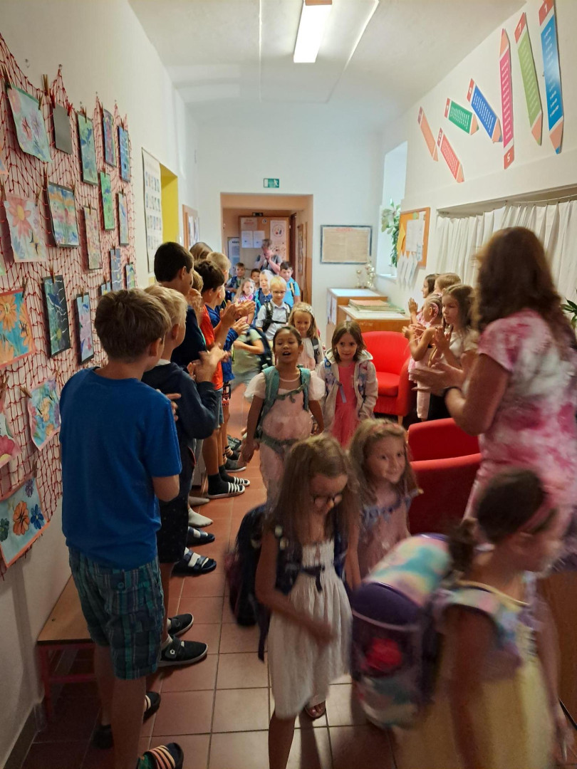 V pondělí 2. září jsme se po prázdninách opět setkali ve škole a společně jsme přivítali nově nastupující prvňáčky. Bylo to moc hezké shledání plné úsměvů a dobré nálady. Tak snad nám to všem vydrží. :)
