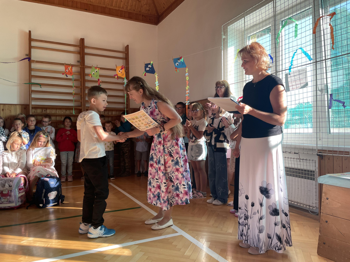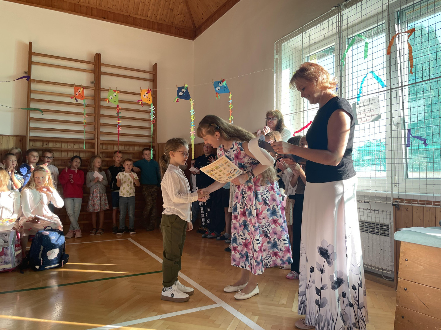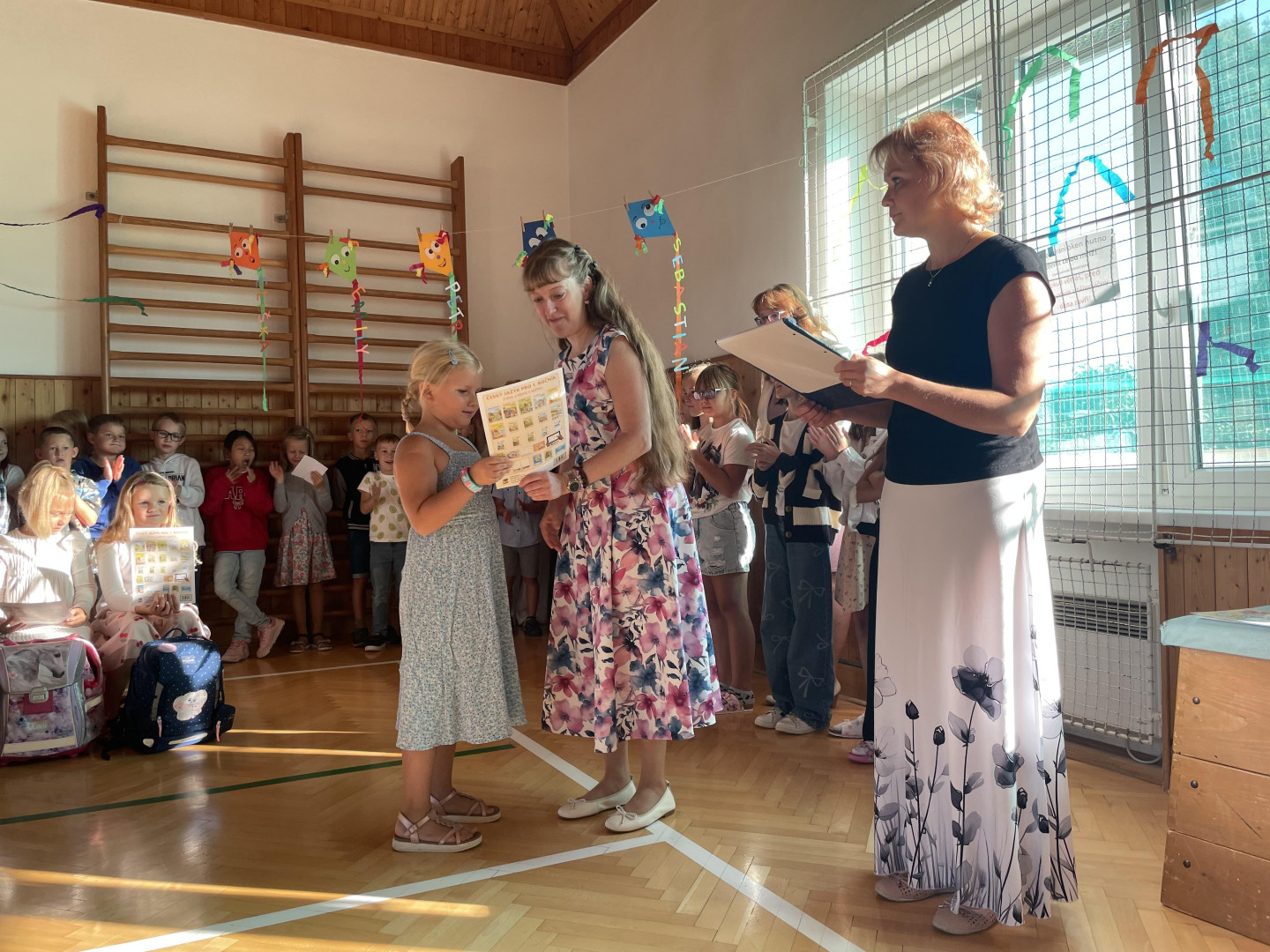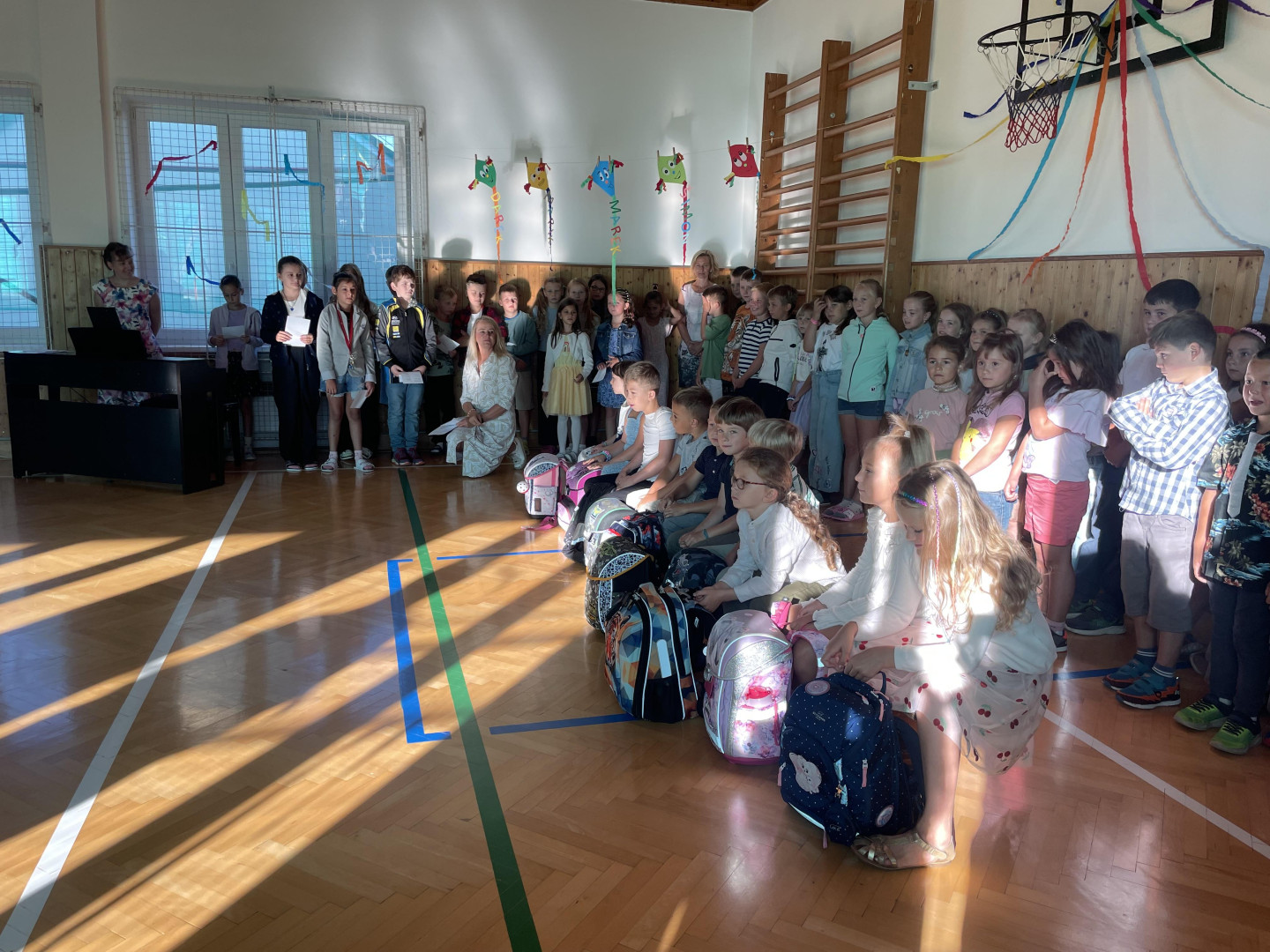 Prvního září jsme se sešli v tělocvičně školy, kde jsme společně slavnostně přivítali nové prvňáčky, nového žáka a novou paní učitelku. Zazpívali jsme si, poslechli si proslov paní ředitelky a pana starosty a děti nastupující do 1. ročníku dostali dárečky na přivítanou. Přejeme všem žákům, učitelům i rodičům hodně sil a optimismu do nového školního roku!