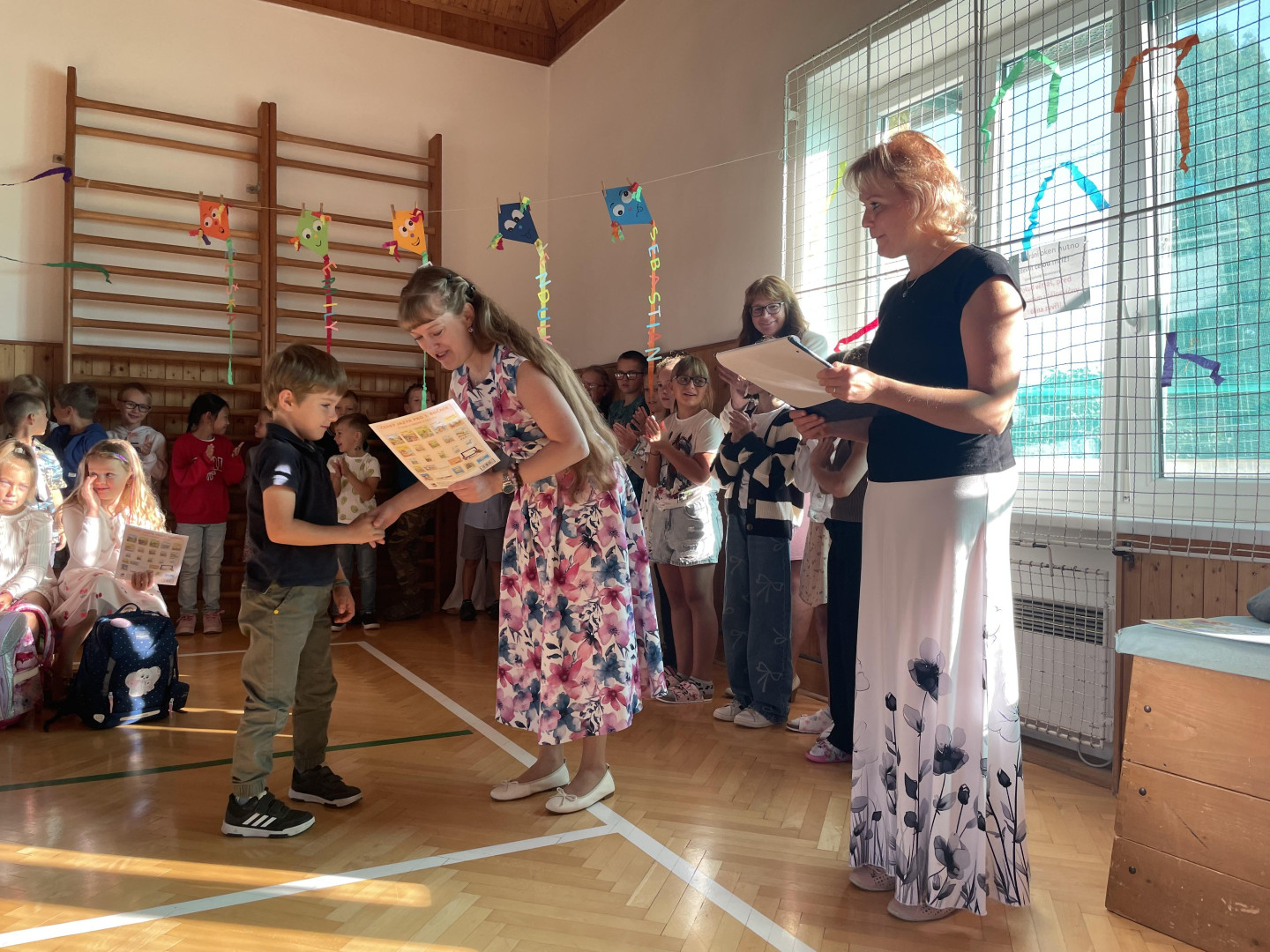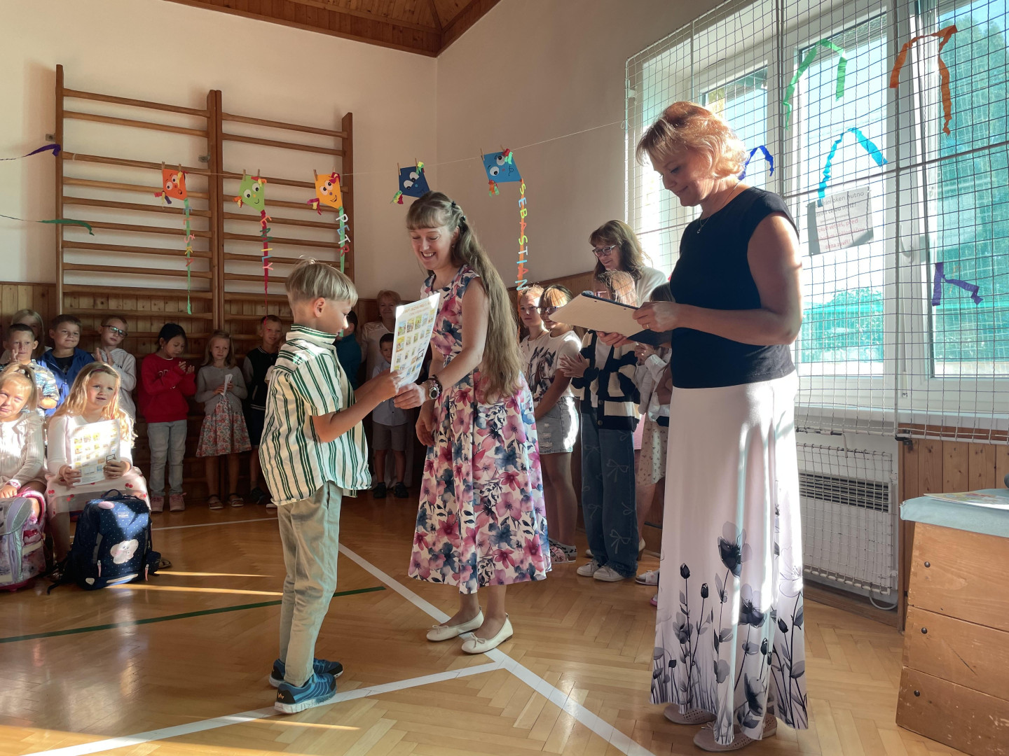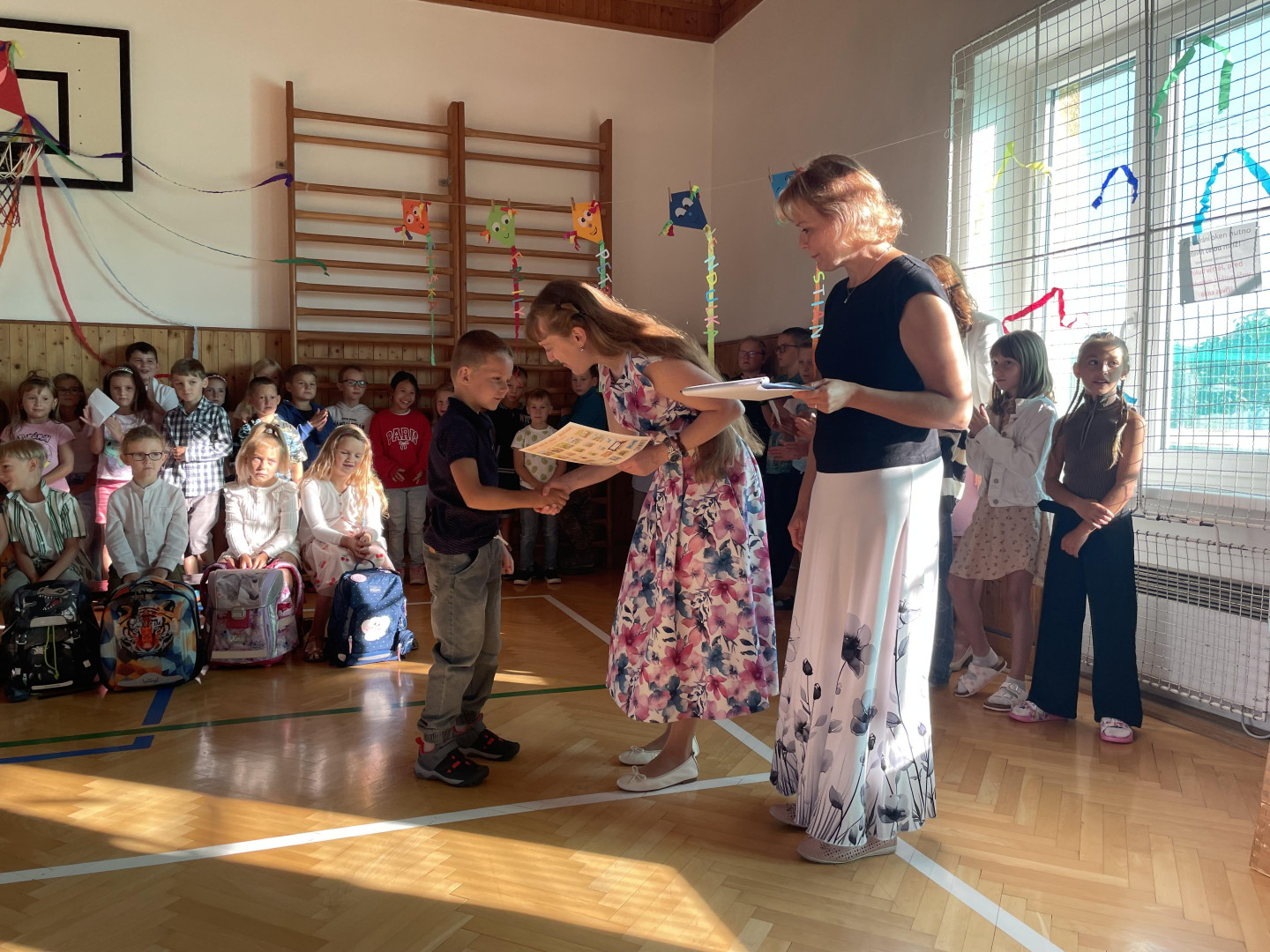 Prvního září jsme se sešli v tělocvičně školy, kde jsme společně slavnostně přivítali nové prvňáčky, nového žáka a novou paní učitelku. Zazpívali jsme si, poslechli si proslov paní ředitelky a pana starosty a děti nastupující do 1. ročníku dostali dárečky na přivítanou. Přejeme všem žákům, učitelům i rodičům hodně sil a optimismu do nového školního roku!