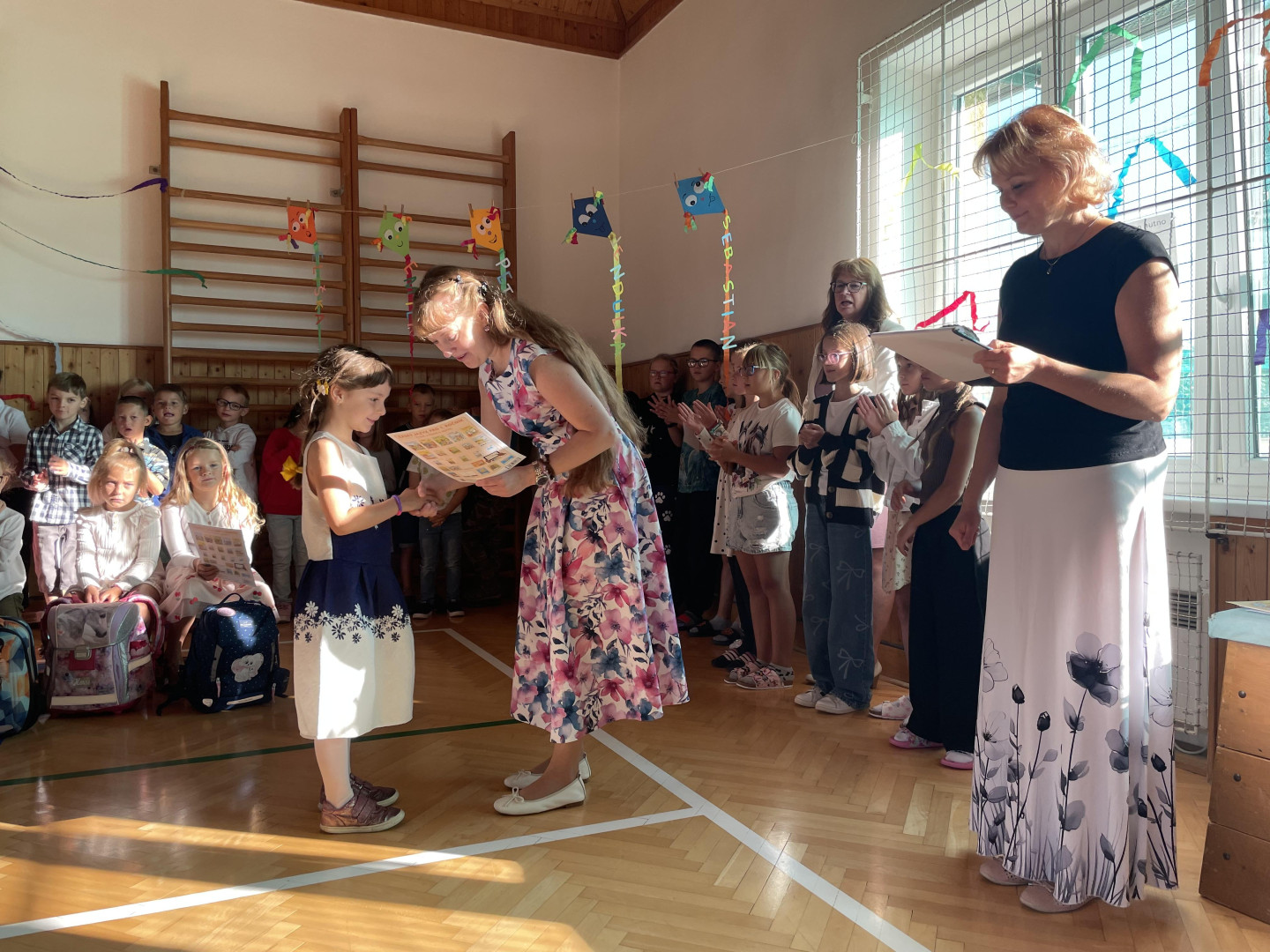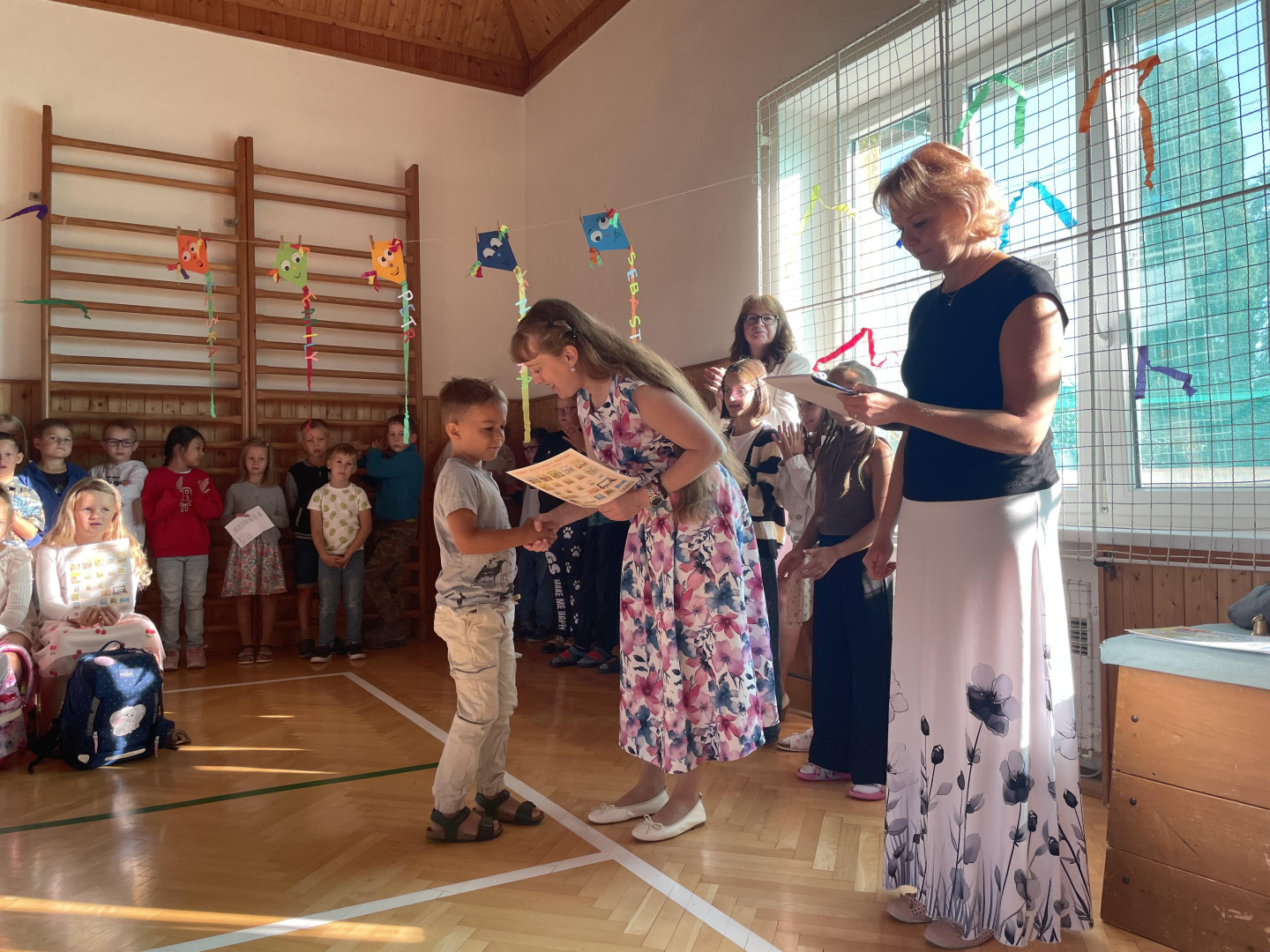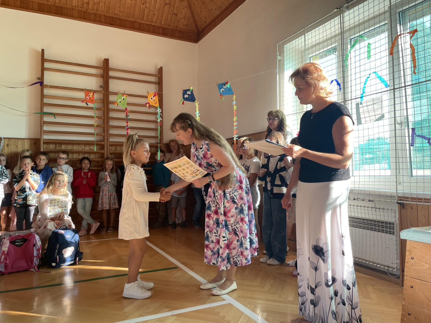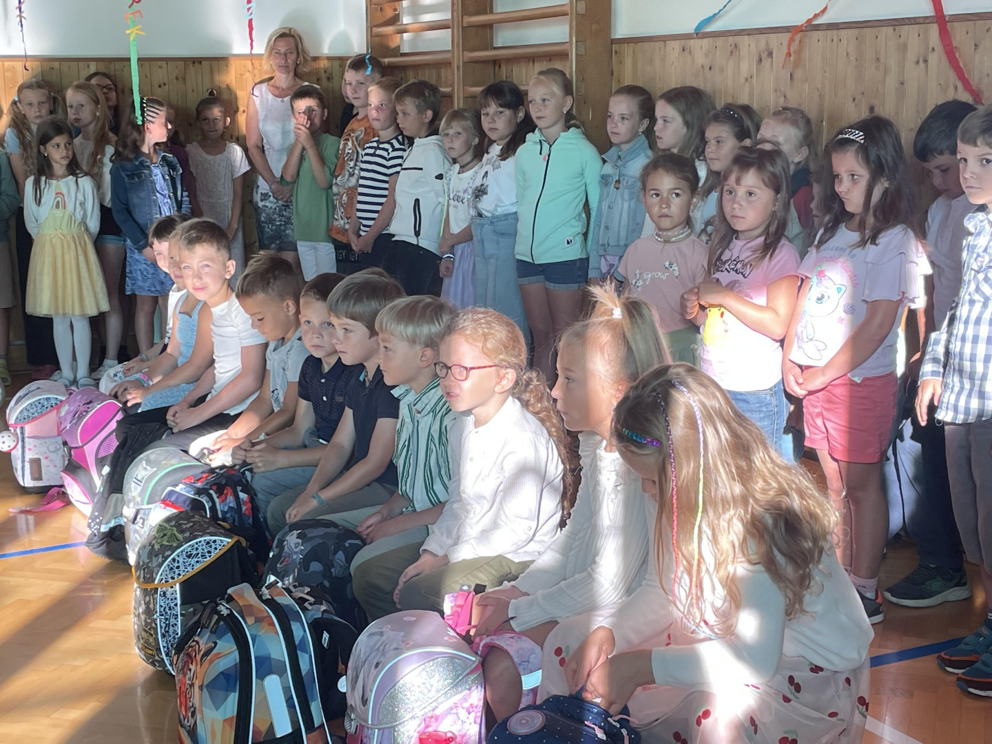 Prvního září jsme se sešli v tělocvičně školy, kde jsme společně slavnostně přivítali nové prvňáčky, nového žáka a novou paní učitelku. Zazpívali jsme si, poslechli si proslov paní ředitelky a pana starosty a děti nastupující do 1. ročníku dostali dárečky na přivítanou. Přejeme všem žákům, učitelům i rodičům hodně sil a optimismu do nového školního roku!